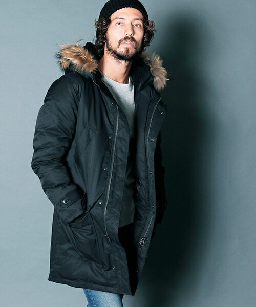 高混率ダウンをセットしたミリタリーフードファーダウンコート。